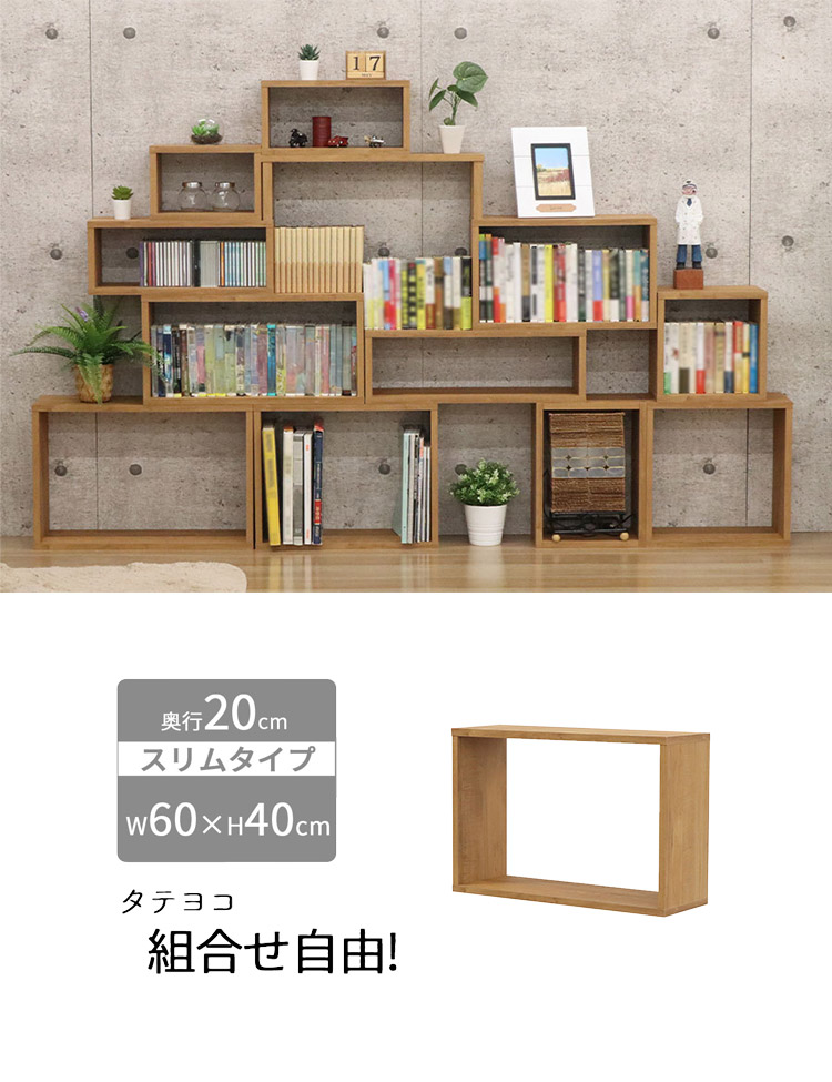 オープンラック・スリム オープンラック 組み合わせ自由 幅60cm 奥行20cm 高さ40cm 小物収納 リビング ダイニング デスク 雑貨収納 ブラウン ラック ディスプレイラック(代引不可)