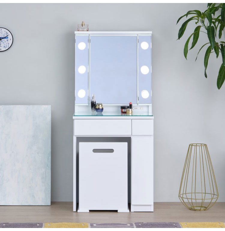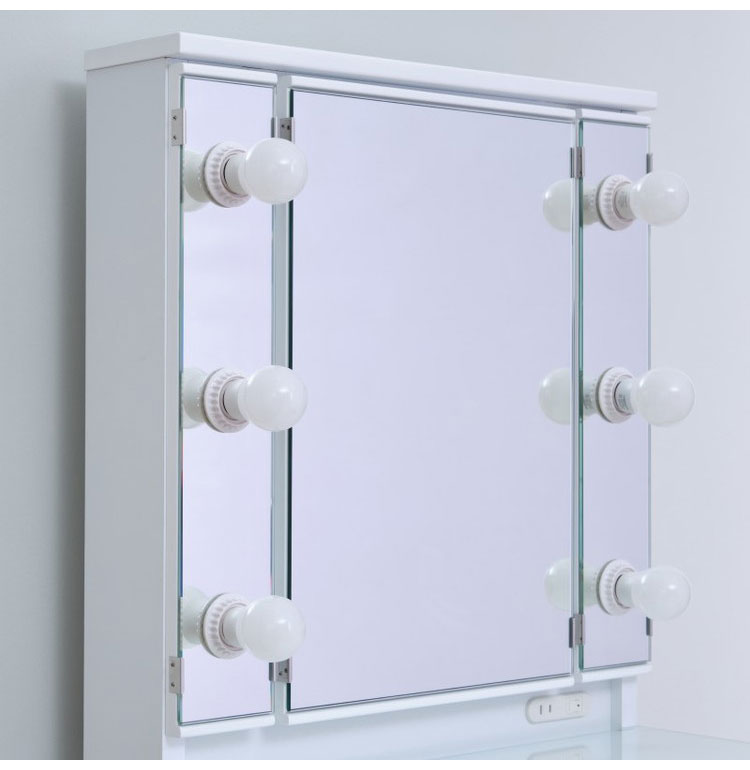プロのメイクアップルームのような空間を演出するLEDライト付きドレッサー。