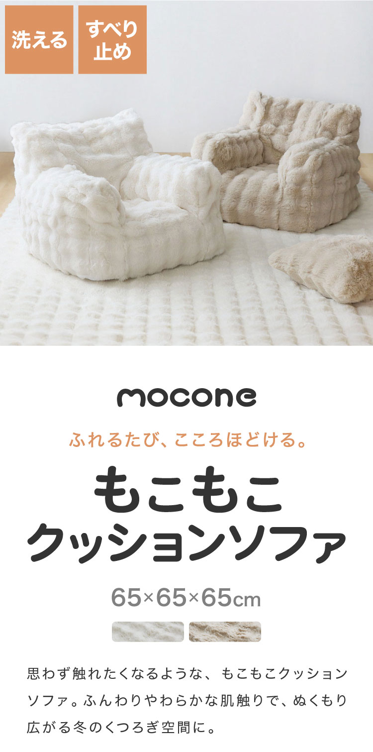 もこもこクッションソファー 1人用 コンパクト 幅65 もこもこ ふわふわ フロアクッション 韓国 インテリア ふわとろクッション カバーリング かわいい 洗える おしゃれ クッションソファ mocone