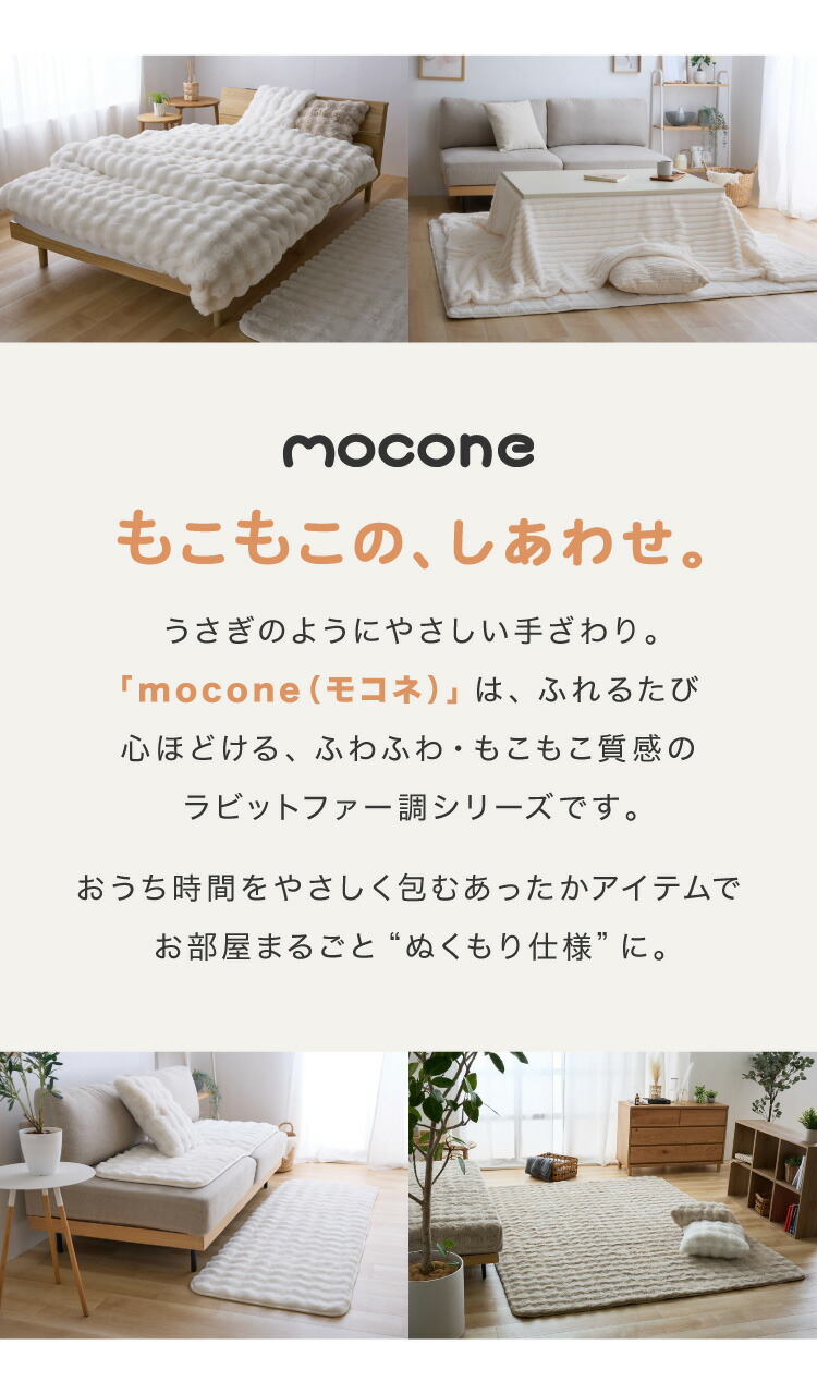 「mocone(モコネ)」は、ふれるたび心ほどける、ふわふわ・もこもこ質感のラビットファー調シリーズです。