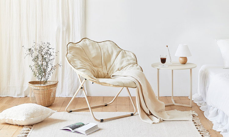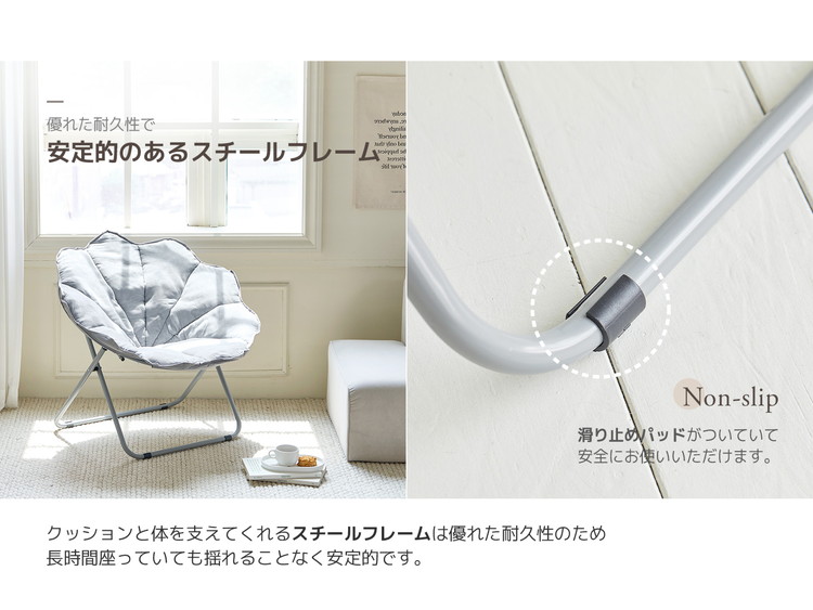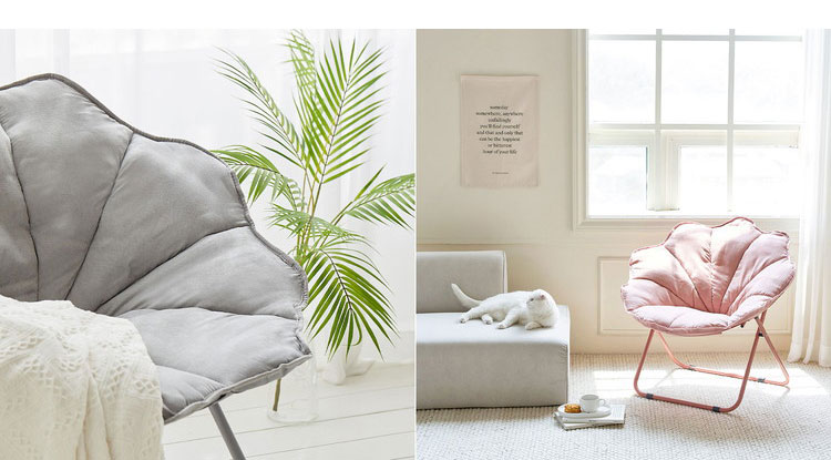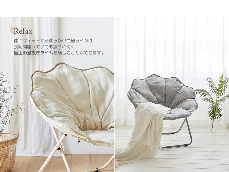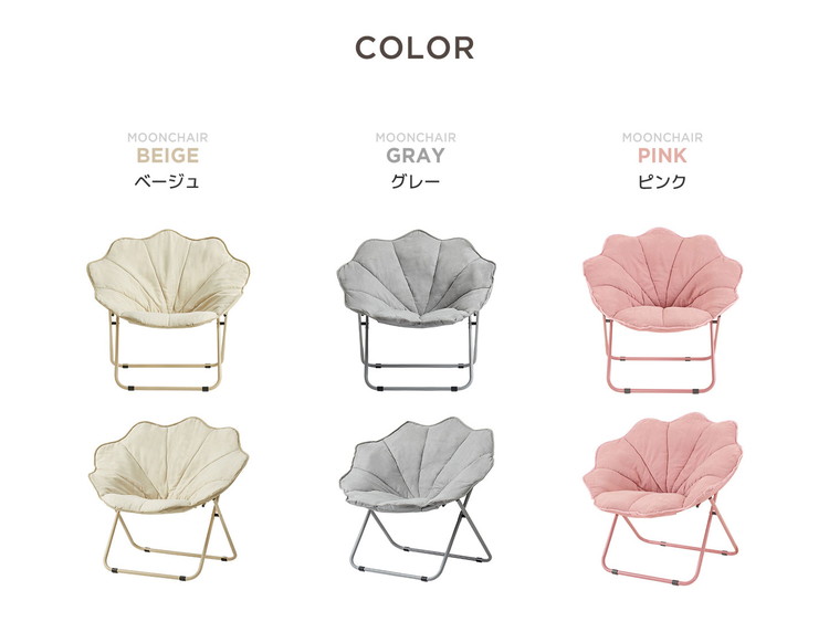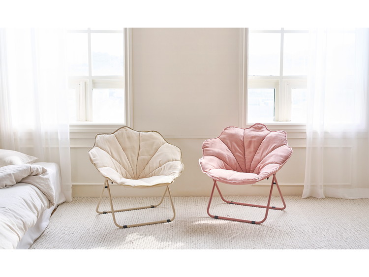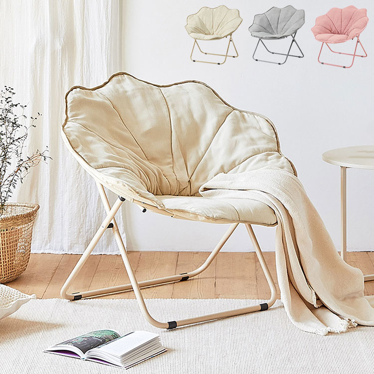 淡いパステルカラーの感覚的なデザインです。誰でも簡単に設置することができるワンタッチ椅子です。