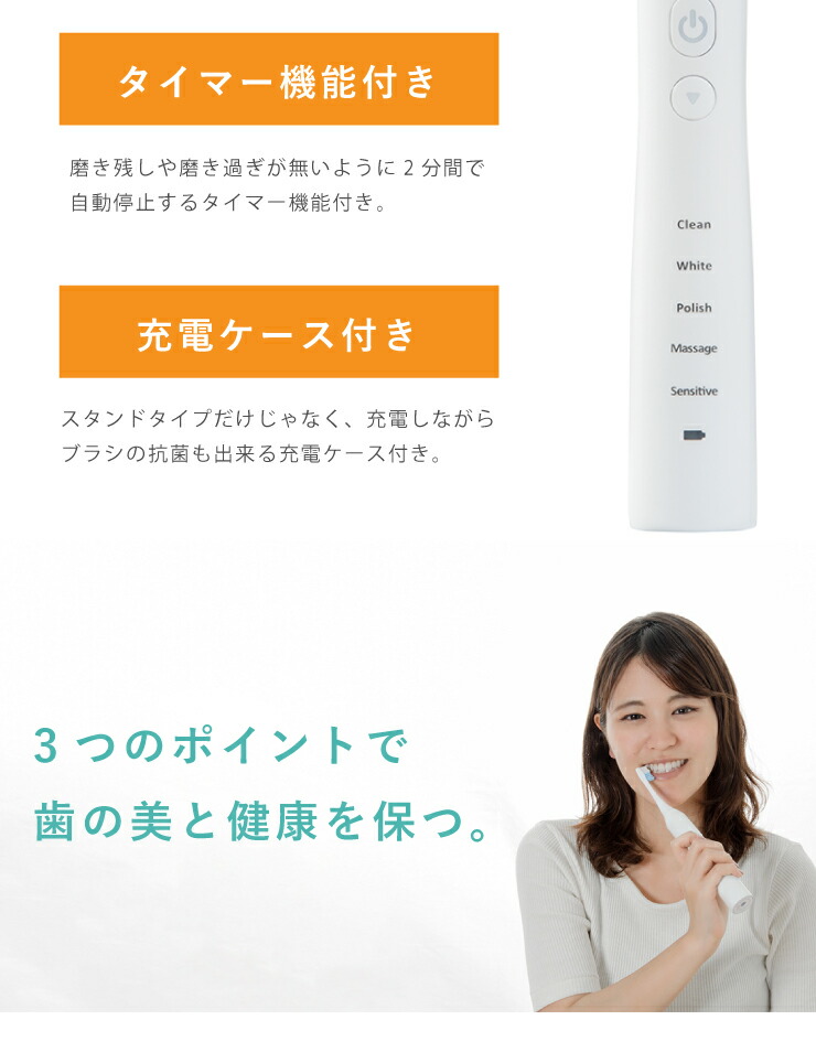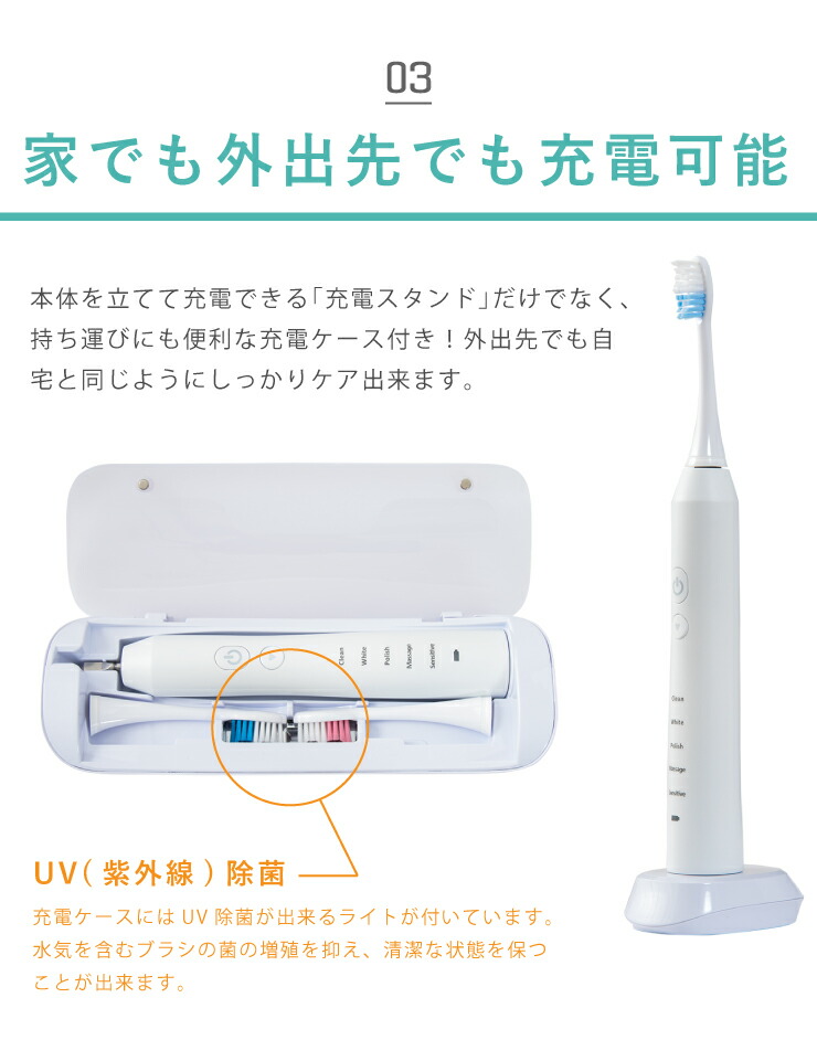 持ち運べる充電式超音波振動歯ブラシです。