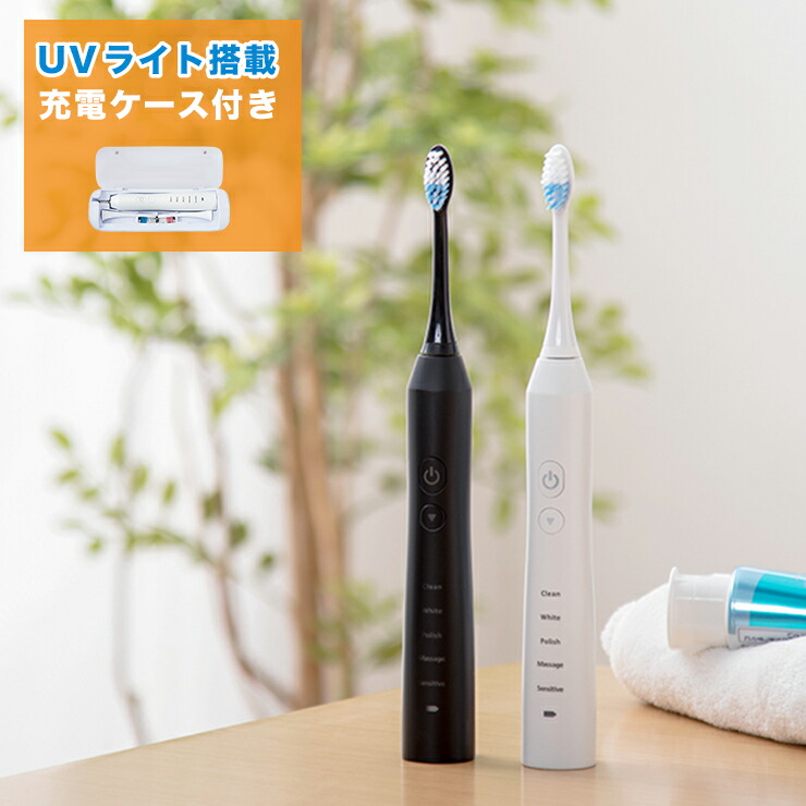 電動歯ブラシ 音波振動 充電式 替えブラシ付き 音波歯ブラシ 最大毎分48,000回 携帯 充電式ケース UV除菌 UVケース USB充電式 口臭対策 虫歯予防