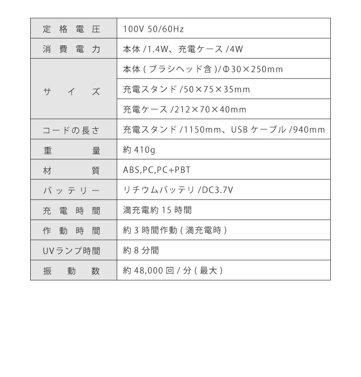 付属品:本体、ブラシヘッドx2、充電スタンド、充電ケース、USBケーブル