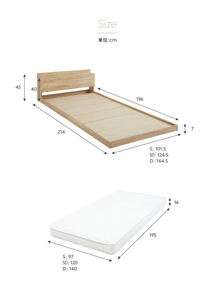 すのこベッド | すのこベッド 高さ2段階調整 宮棚付き | すのこベッド 高さ3段階調整 | すのこベッド 高さ3段階調整 宮棚付き |