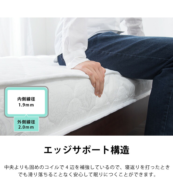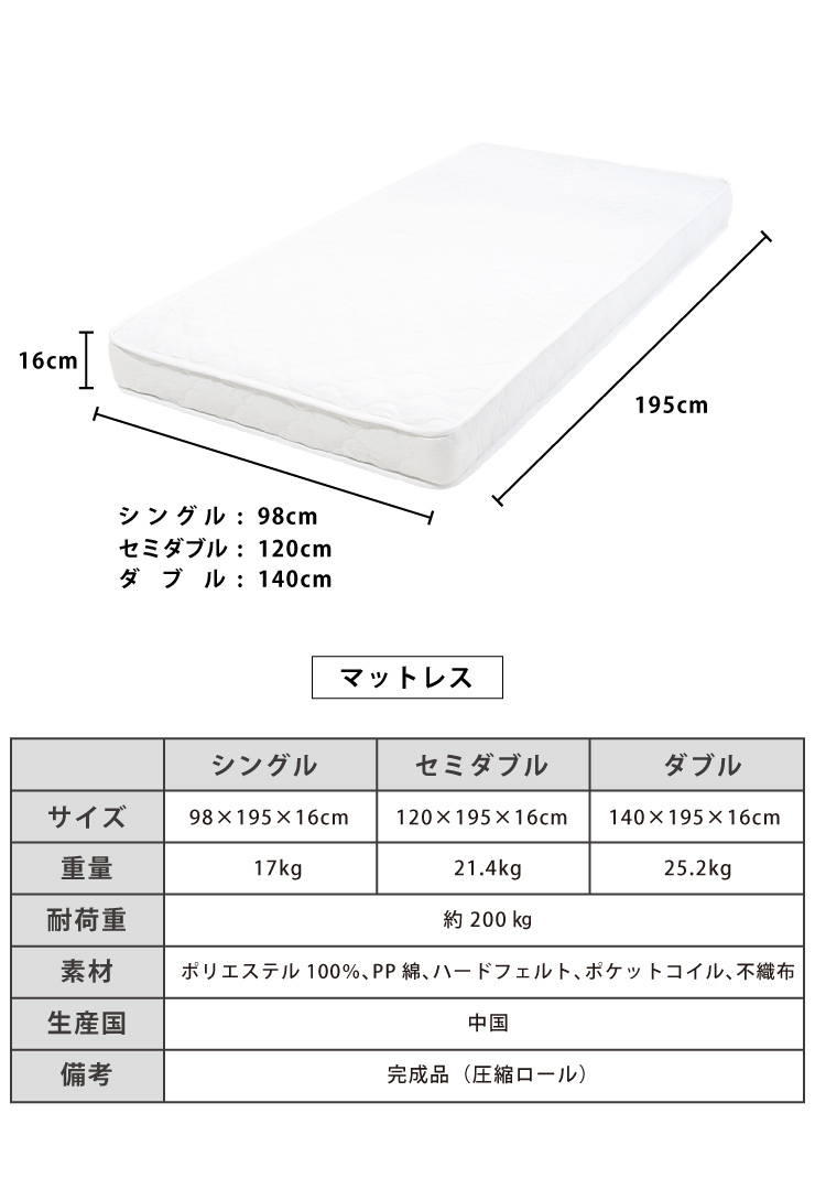 | ポケットコイルマットレス付き シングル | ポケットコイルマットレス付き セミダブル | ポケットコイルマットレス付き ダブル |