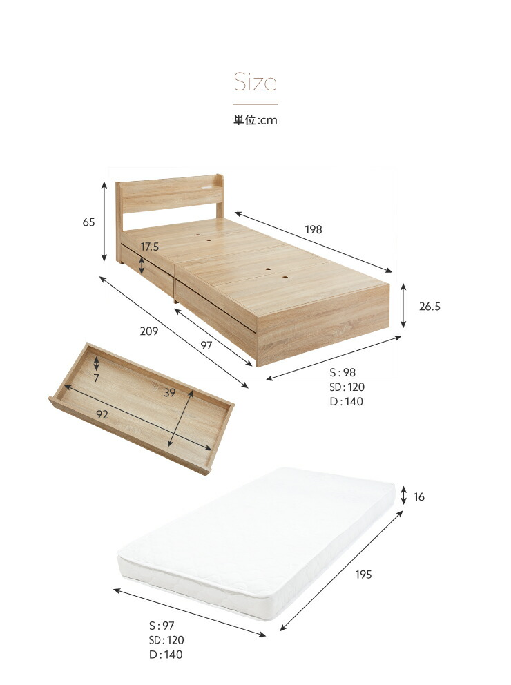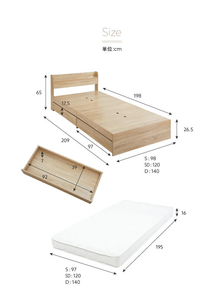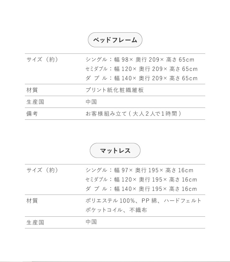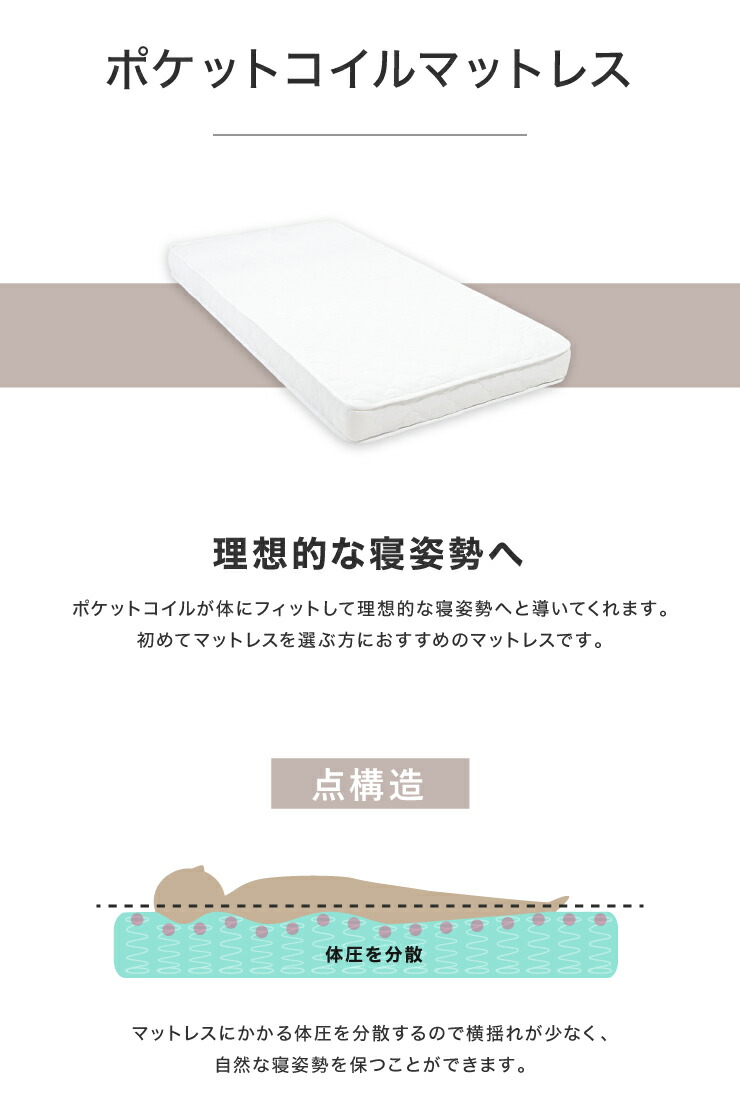 | ポケットコイルマットレス付き シングル | ポケットコイルマットレス付き セミダブル | ポケットコイルマットレス付き ダブル |