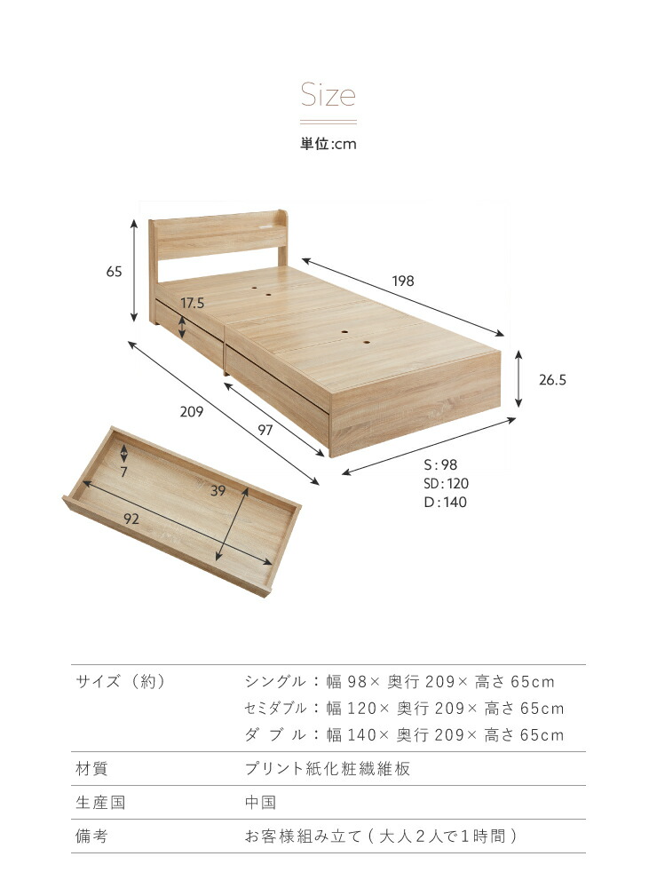 収納ベッド 宮棚付き | ローベッド 宮棚付き | チェストベッド 宮棚付き |