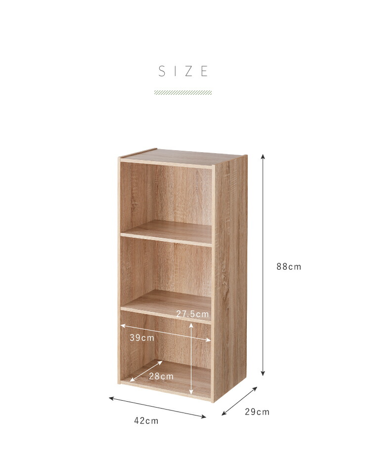 カラーボックス 3段 幅42cm 奥行29cm 高さ88cm 組立て簡単 工具不要 木目調 ブラウン ナチュラル シンプル 北欧 リビング 子供部屋 収納ボックス シェルフ ラック 棚 本棚 収納ケース (代引不可)