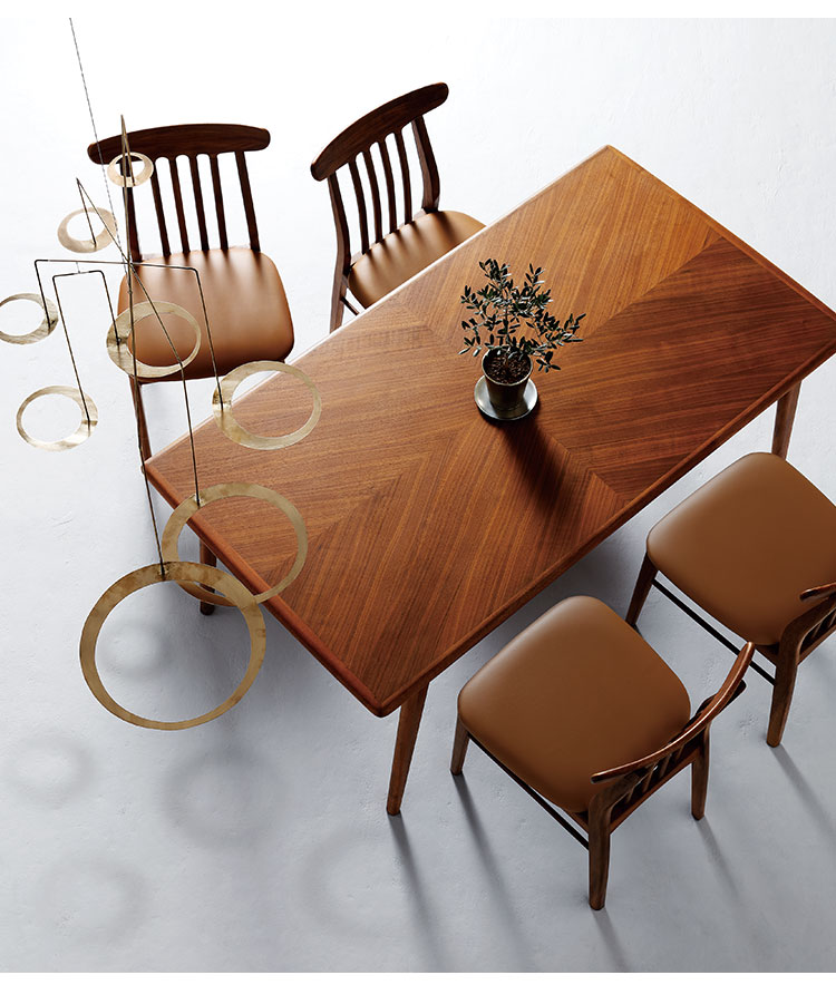 シンプルデザイン(曲線にて優しい)、オイルフィニッシュ(亜麻仁油オイル)、ハンドメイド性(小ロッドにてこだわりのある製品作り) 。