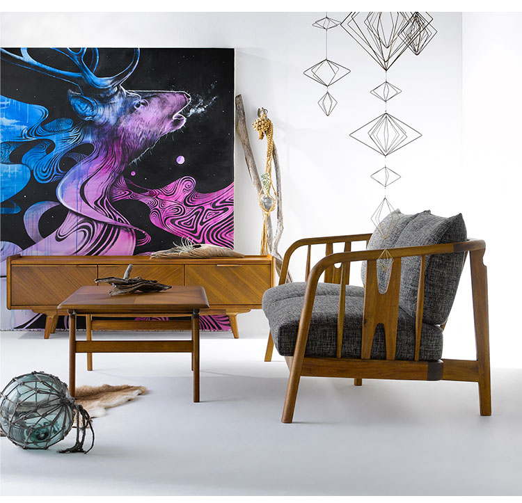 シンプルデザイン(曲線にて優しい)、オイルフィニッシュ(亜麻仁油オイル)、ハンドメイド性(小ロッドにてこだわりのある製品作り) 。
