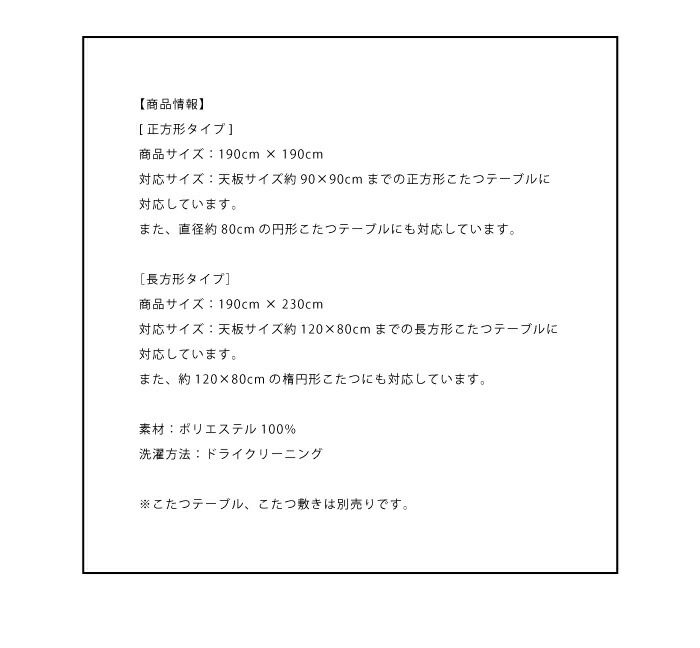 正方形 190×190cm | 長方形 190×230cm |