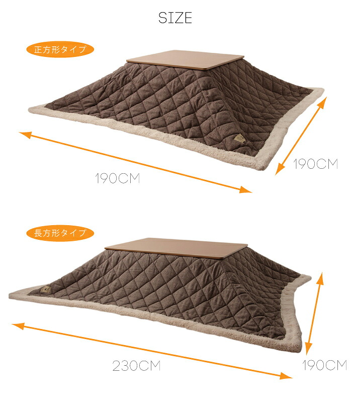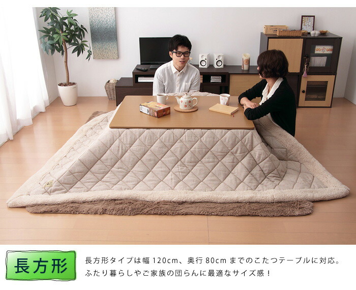 対応サイズ:天板サイズ約120×80cmまでの長方形こたつに対応しています。