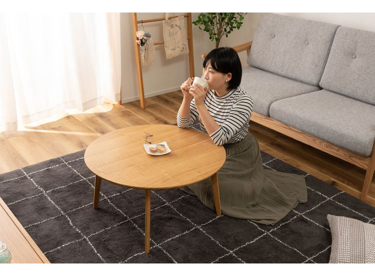 角がなくどこからでも座ることのできる丸い形は、おしゃれなローテーブルとしてぴったり。