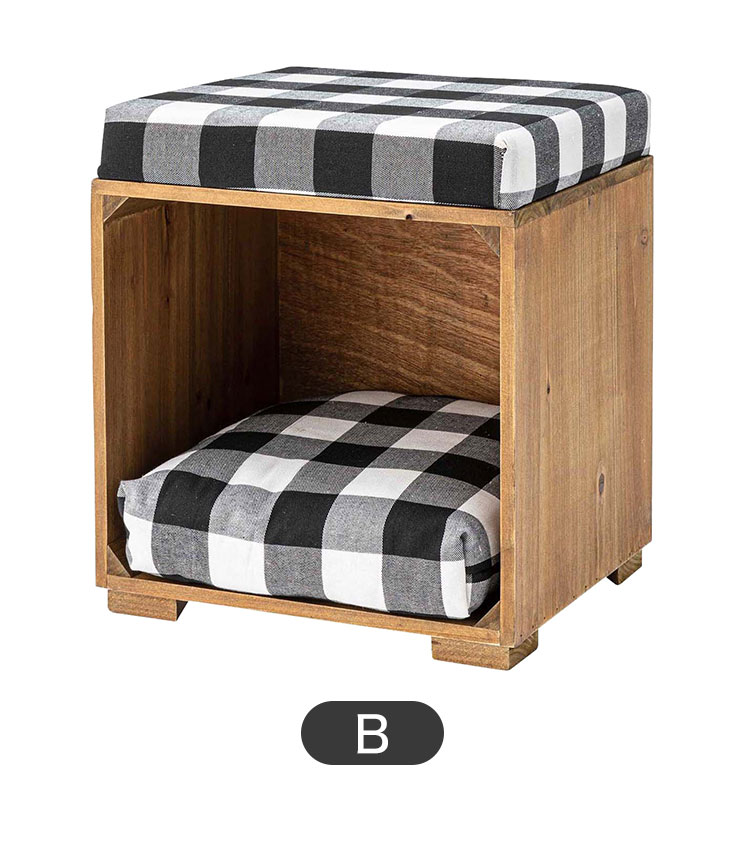 スツール ペット ペットスツール クッション 天然木 かわいい おしゃれ 小型犬 猫 ネコ いぬ チェック シンプル コットン(代引不可)
