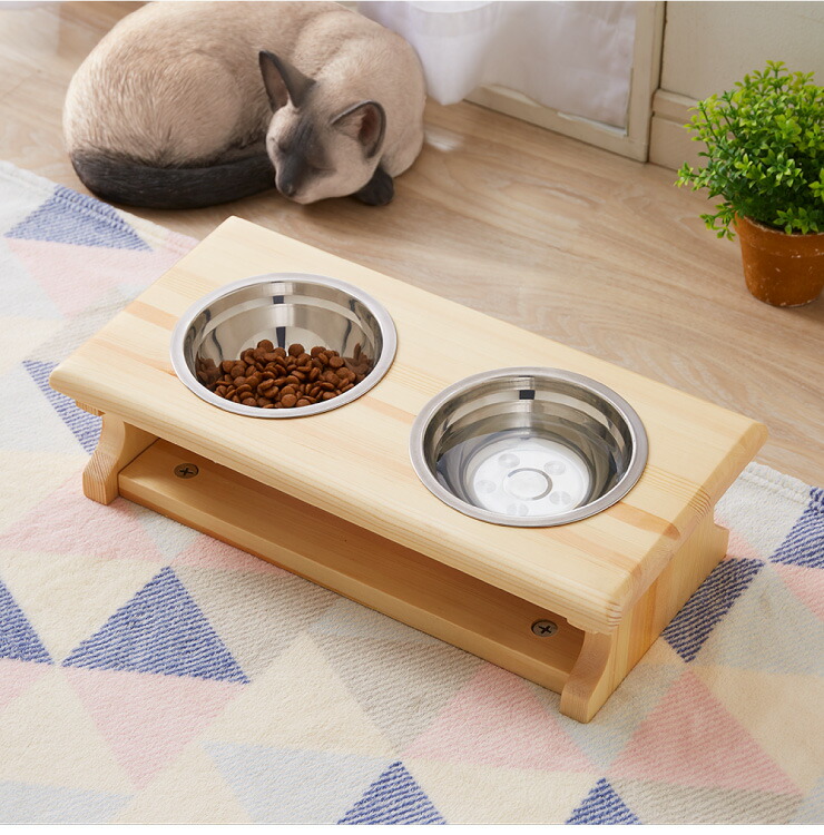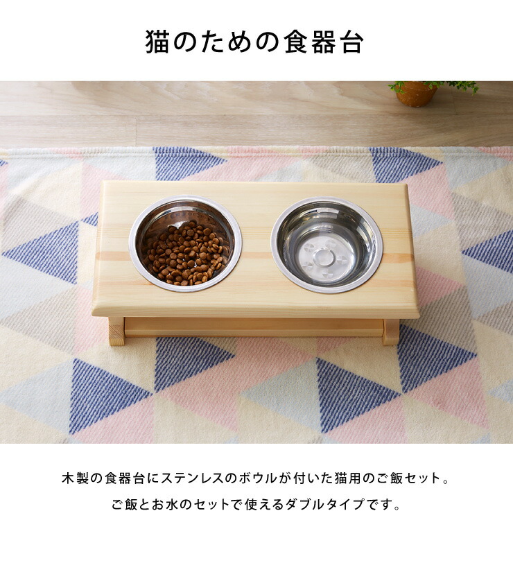 猫用 食器スタンド 木製 ボウル付き 選べるサイズ S M ペット用 猫 ねこ 食器台 餌台 餌入れ 餌皿 フードボウル 天然木 おしゃれ