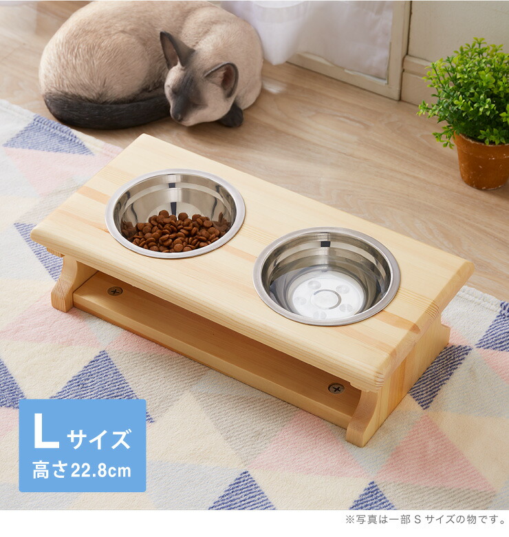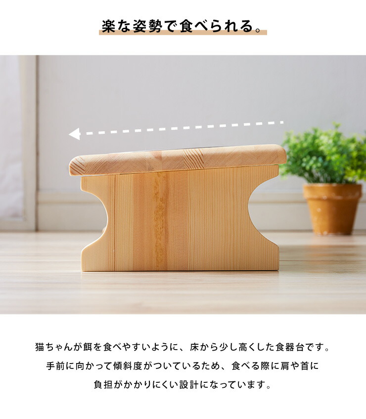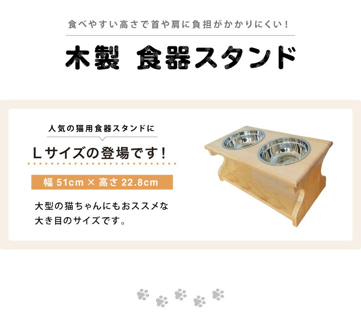 猫用 食器スタンド 木製 ボウル付き Lサイズ 幅51cm 高さ22.8cm 奥行26cm ペット用 猫 ねこ 大型 大人 食器台 餌台 餌入れ 餌皿
