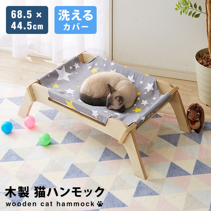 猫 ハンモック 木製 洗えるカバー 猫用 ペット用 春 夏 秋 冬 キャットハンモック ベッド お昼寝 ねこ ペット 天然木 おしゃれ