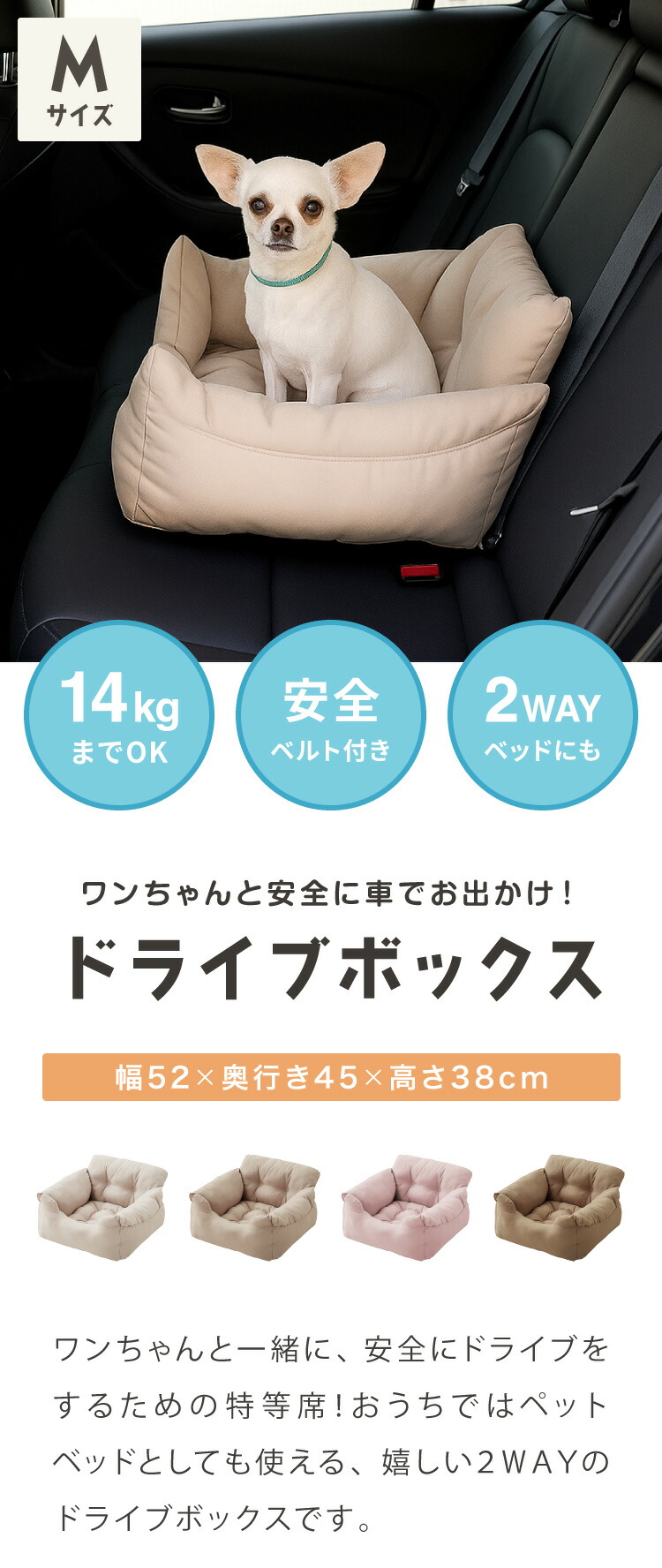 ドライブボックス 犬 車用 Mサイズ ドライブベッド キャリーバッグ ドライブシート 小型犬 中型犬 ペットベッド カーベッド 助手席 安全 お散歩 お出かけ ドライブ ボックス ベッド 飛び出し防止