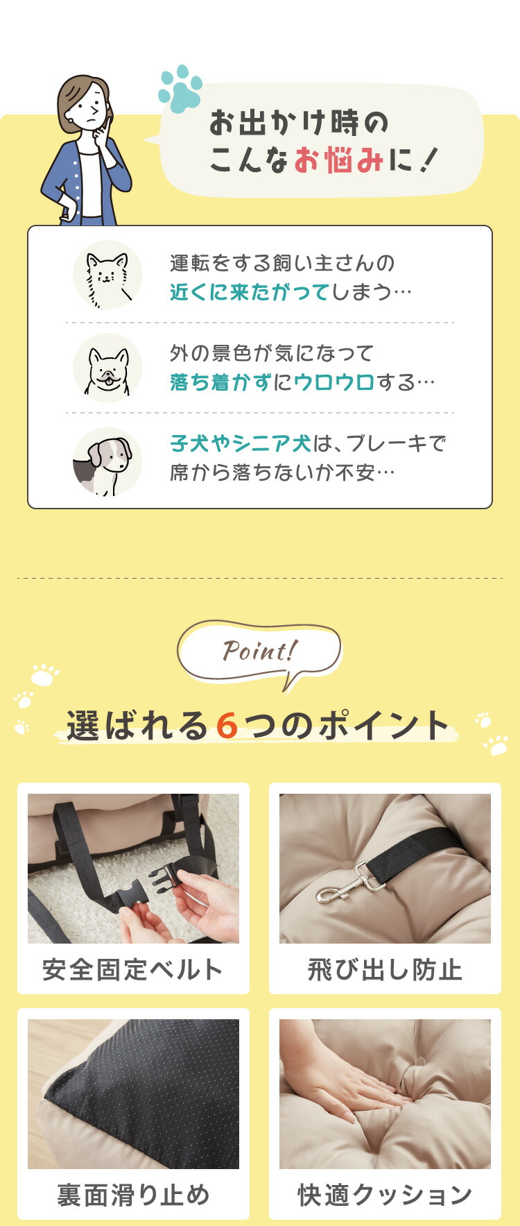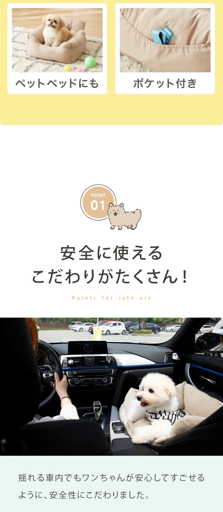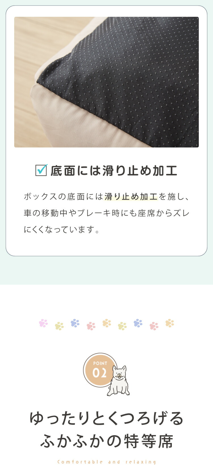 ・わんちゃんもくつろぎながら一緒にお出かけができます