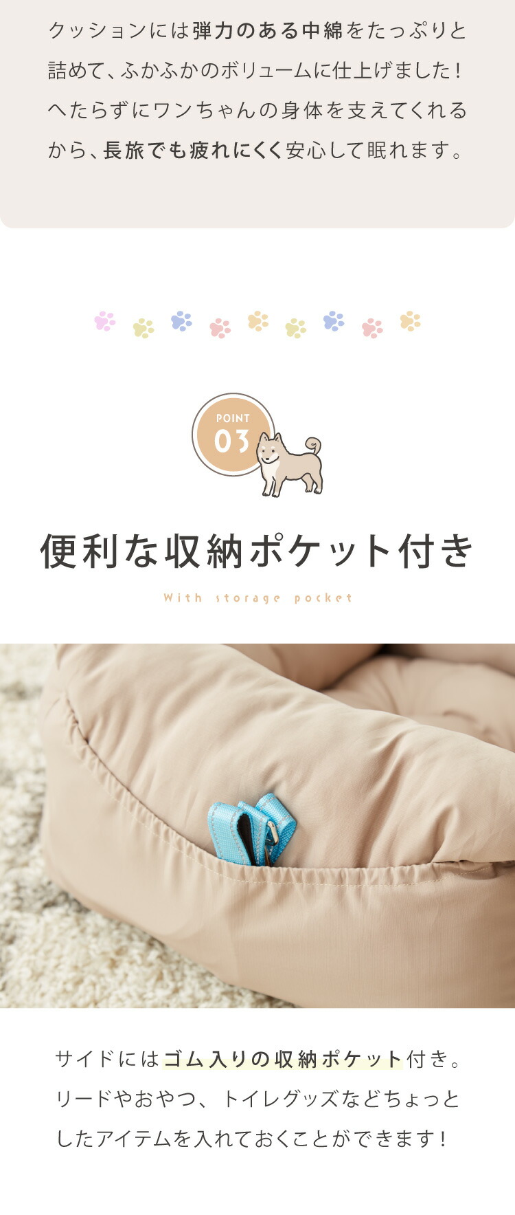 ・便利な収納ポケット付きで小物も入れられる