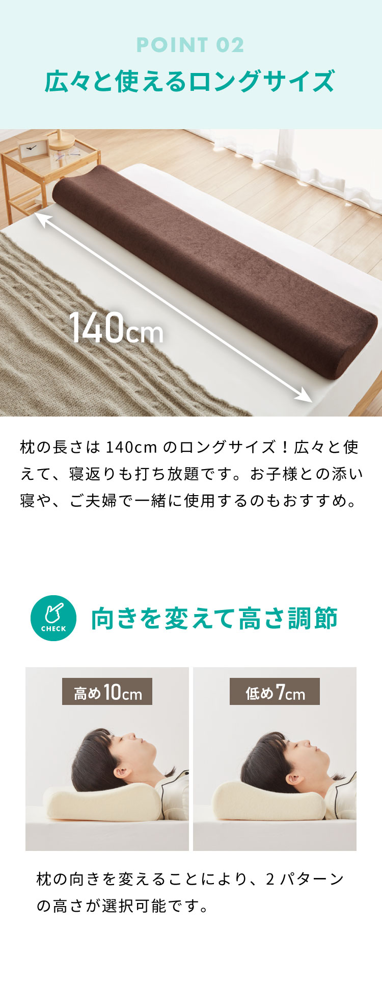 低反発まくら 圧分散ワイド 幅75cm | 低反発ロングまくら 幅100cm | 低反発ロングまくら 幅140cm |