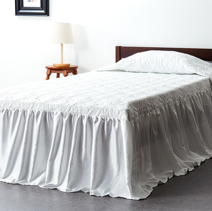 ベッドカバー おしゃれ 北欧 ダブル 150×280×45cm 洗える ウォッシャブル フリル ナチュラルフリル エレガント 刺繍 フリル 銀糸 ピーチスキン加工 D 1枚入り ホテル仕様 寝具 ベッドスプレッド ベッドスカート