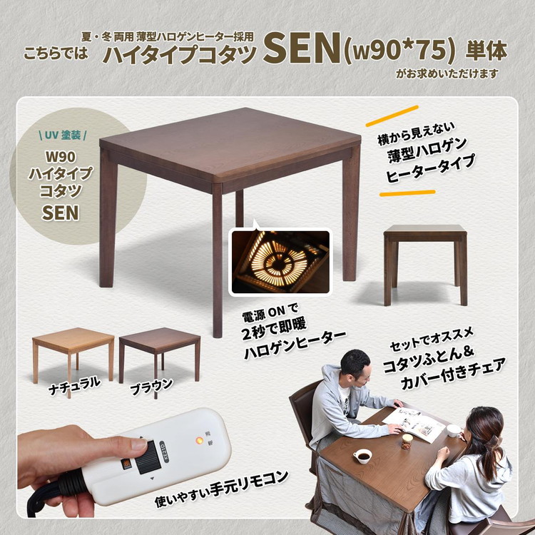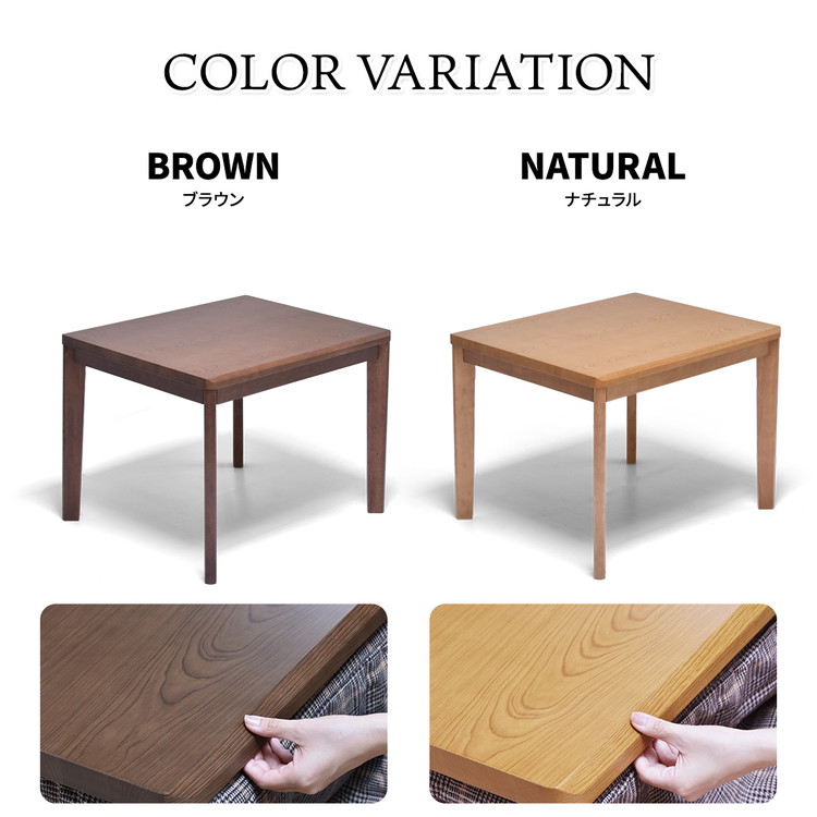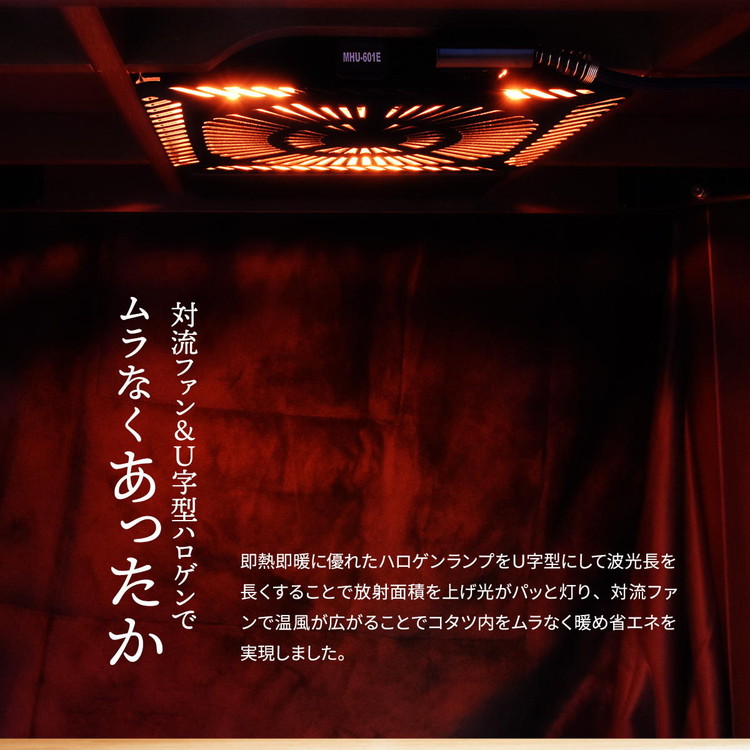 素 材:【天板】プリント化粧合板(UV塗装) 【脚フレーム】天然木(ウレタン塗装)【ヒーター】U字型ハロゲンヒーター「メーカー型番:MHU-601E(D)」