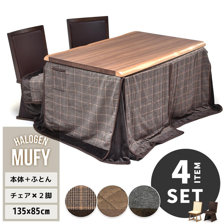 単品 | 2点セット(コタツ+掛布団) | 3点セット(コタツ+チェアー2脚) |