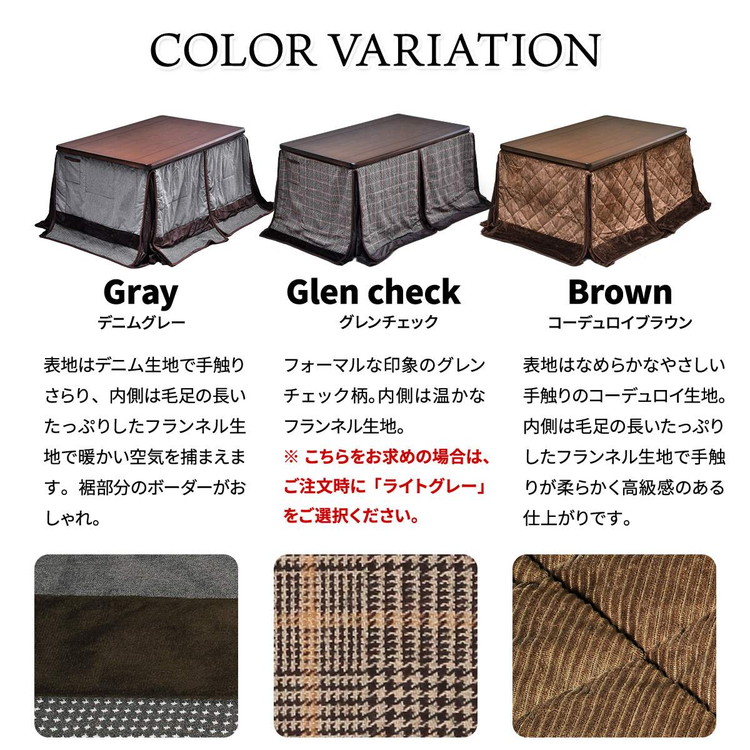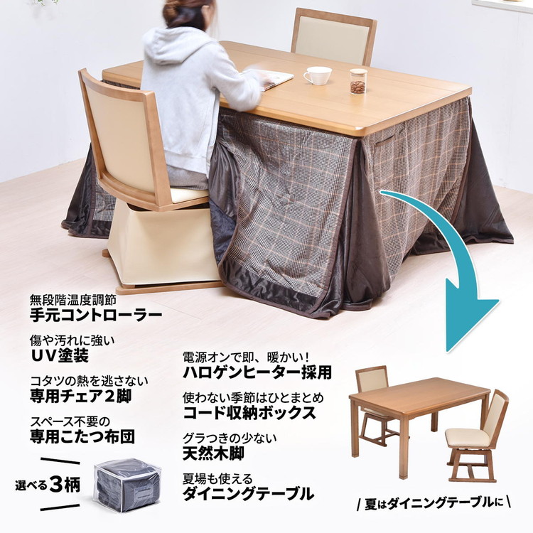 単品 | 2点セット(コタツ+掛布団) | 3点セット(コタツ+チェアー2脚) |