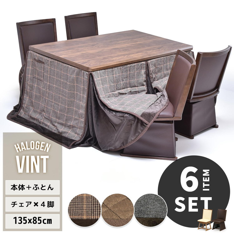 ウォールナット柄シート ハイコタツ幅135(6点セット) コタツ コタツ布団 敷き布団 掛け布団 コタツテーブル コタツチェア ダイニングコタツ ローテーブル ダイニング 暖冬 冬 暖房(代引不可)