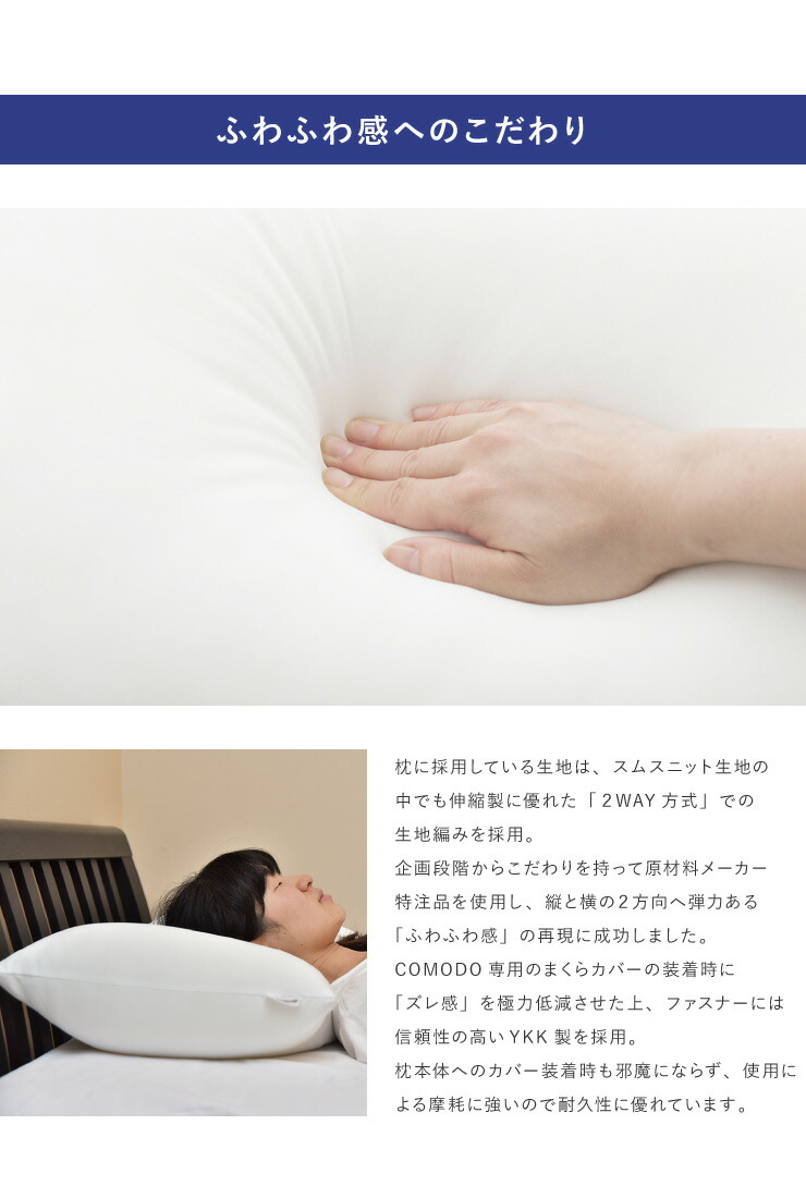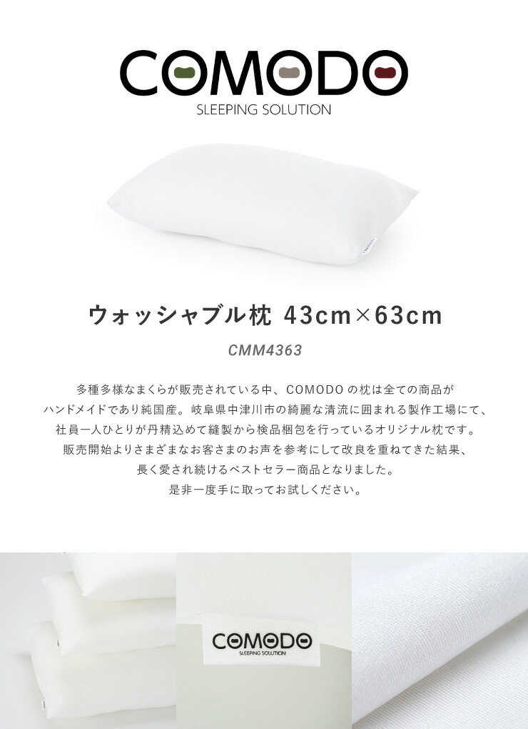 【COMODO】 ウォッシャブル枕 43cm×63cm CMM4363 日本製 枕 安眠 ホテル クッション だきまくら まくら だき枕 国産
