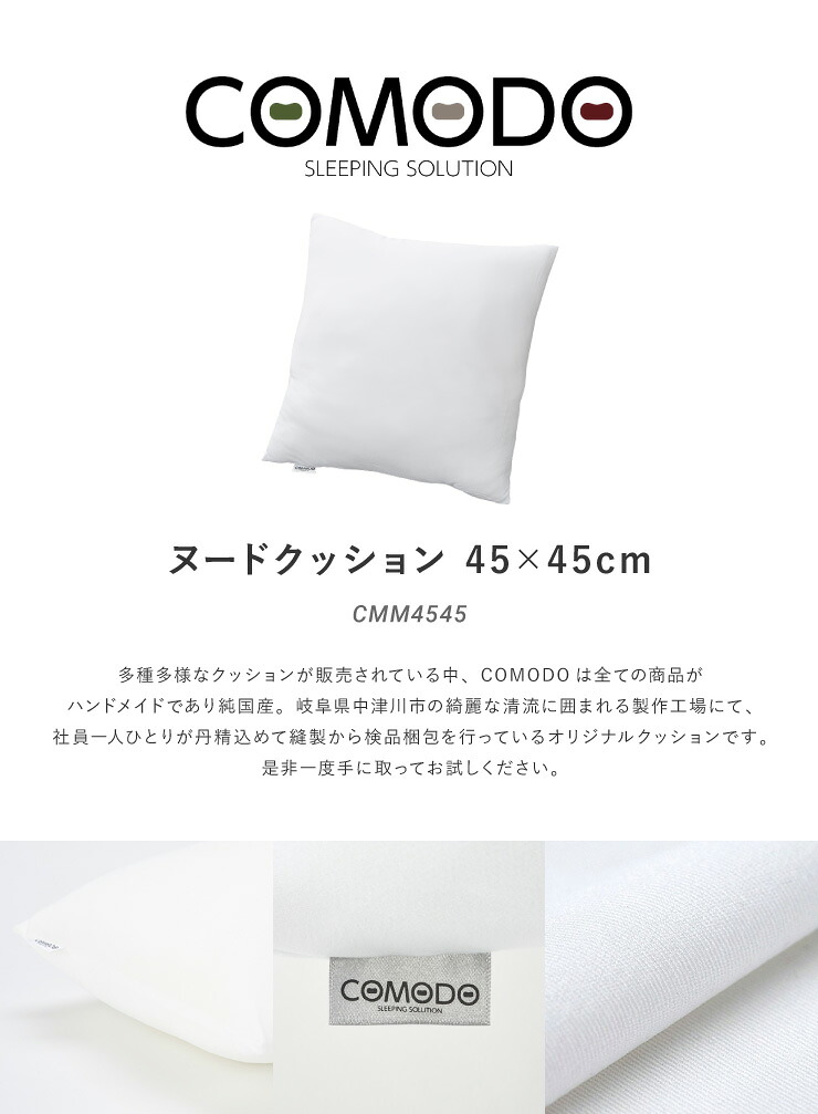 【COMODO】 ヌードクッション 45×45cm CMM4545 日本製 国産 ホテル 枕 クッション まくら 安眠