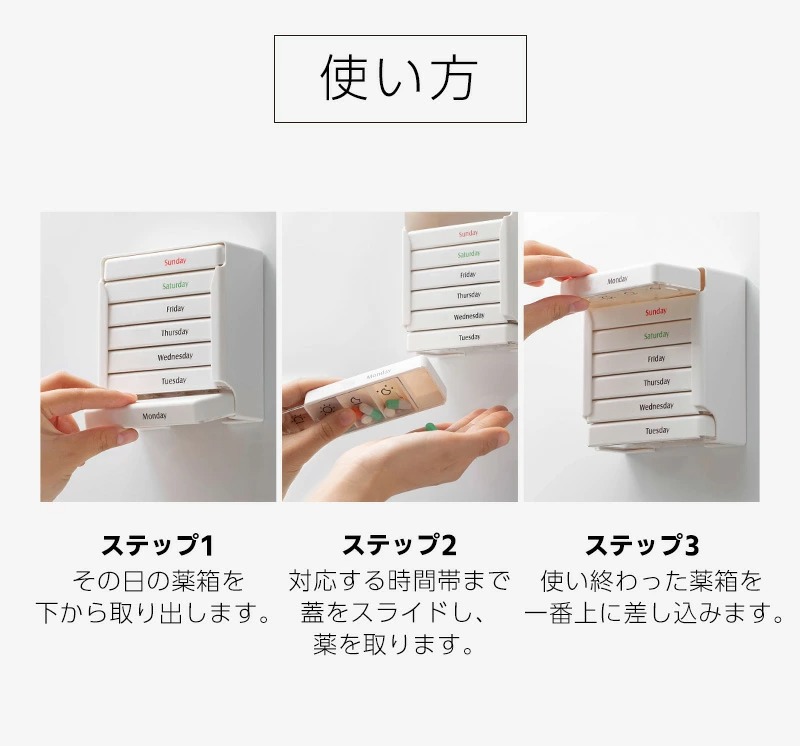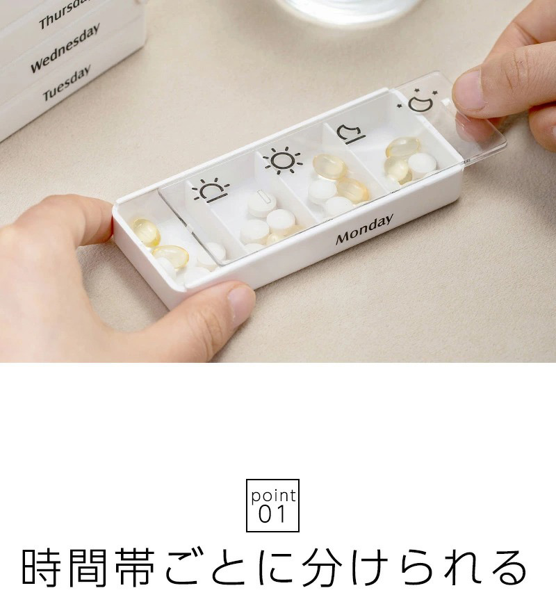 ※この製品は密封容器ではありません。医薬品は速やかに服用し、長時間薬箱に入れないでください。