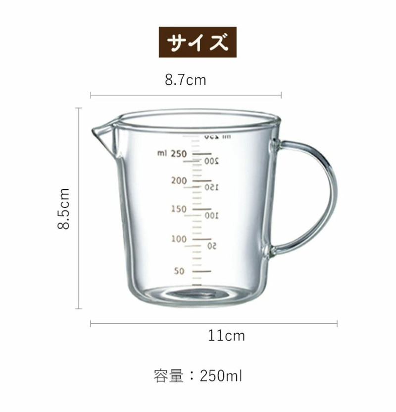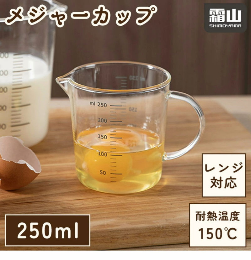 検索用キーワードメジャーカップ 250ml 計量カップ 計量 カップ 硬質ガラス 電子レンジ お菓子作り 製菓道具 調理器具 はかり 耐熱 キッチン用品 便利 霜山