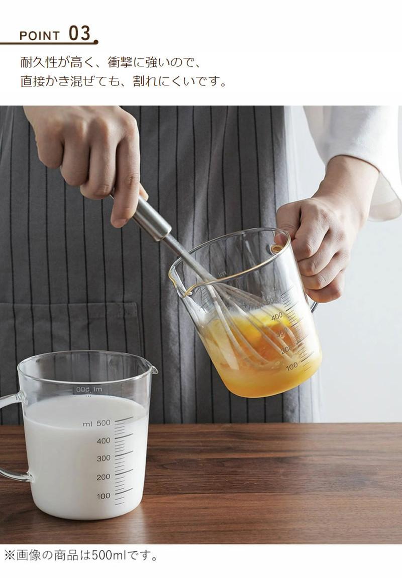 ・耐久性が高く、衝撃に強いので、直接かき混ぜても、割れにくいです。
