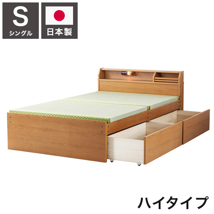 ベッドフレーム シングル 照明付き日本製い草張り収納ベッド ハイタイプ ナチュラル ベットフレーム ベッド ベット 寝具 インテリア 家具 BCB540 LBR H S シングルサイズ Sサイズ(代引不可)
