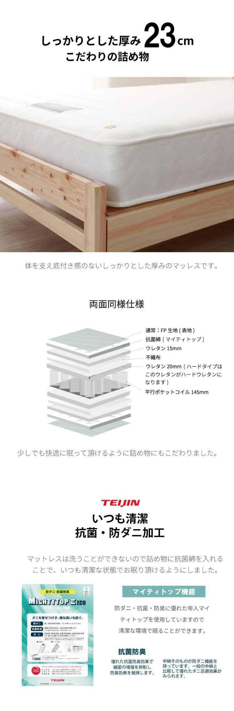 中材:ウレタン、不織布、抗菌綿、ポケットコイル
