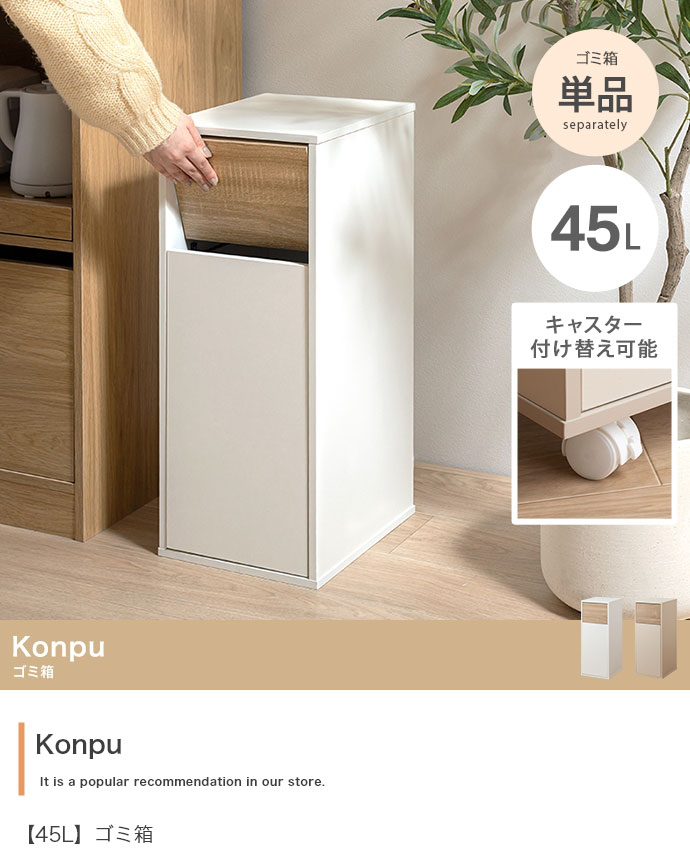 • Konpu コンプ ゴミ箱45L 北欧 ナチュラル 木目 スリム幅 組立品 隙間設置 スイング式 マグネット式前扉 袋の取替え簡単 キッチン ダイニング リビング デスク 45Lゴミ箱 広い捨て口 スイング式扉(代引不可)