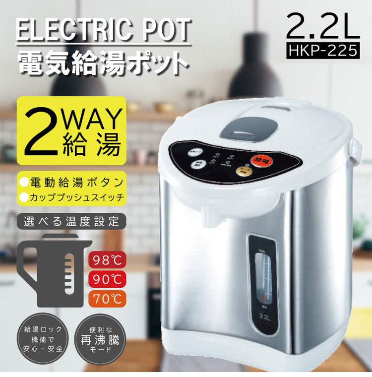 simplus 電気ポット 2.2L 省エネモード 保温 マイコン式 大容量 コンパクト ジャーポット ポット カルキ抜き 空焚き防止 温度調節 軽量 SP-PD22 シンプラス