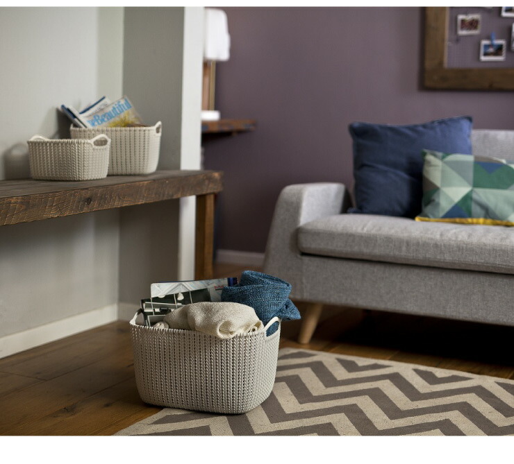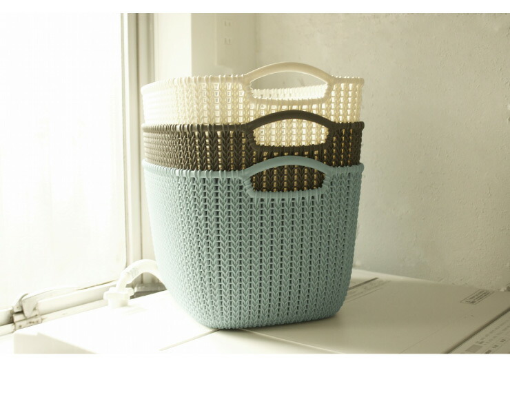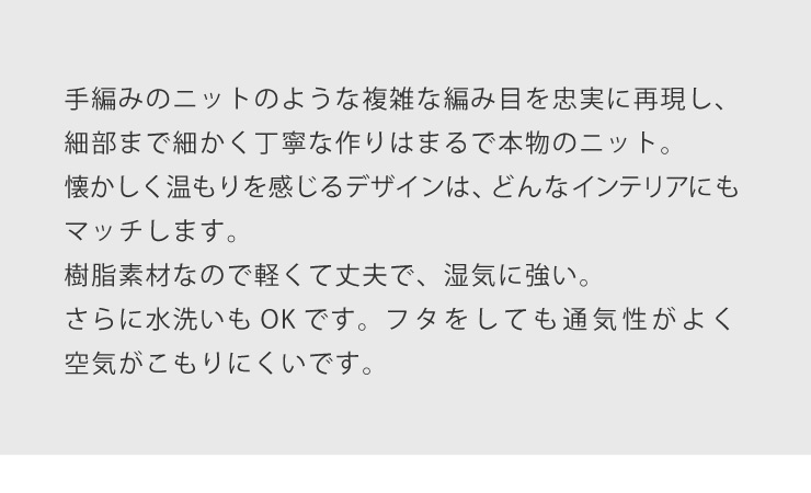 手編みのニットを繊細に表現した扱いやすくおしゃれな樹脂バスケットです。