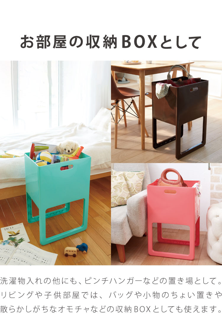 洗濯物入れにはもちろん、ピンチハンガーなどの置き場として、リビングや子供部屋ではバッグや小物のちょい置きや散らかしがちなオモチャなどの収納BOXとしても使えます。
