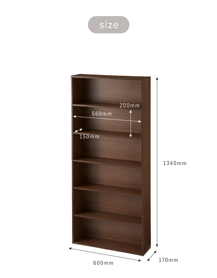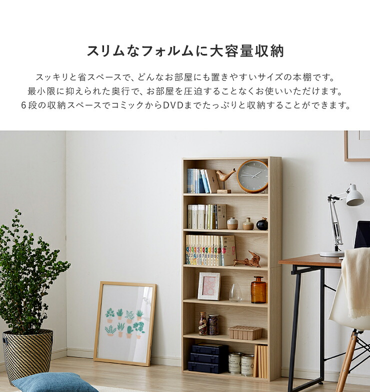 本棚 スリム 書棚 6段 幅60 高さ134 奥行17 木製 ブックシェルフ 収納 薄型 シェルフ ハイタイプ カラーボックス おしゃれ