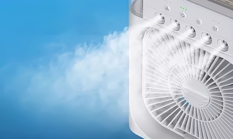 風量調節3段階。最大5連ミストで強力な気化熱作用。