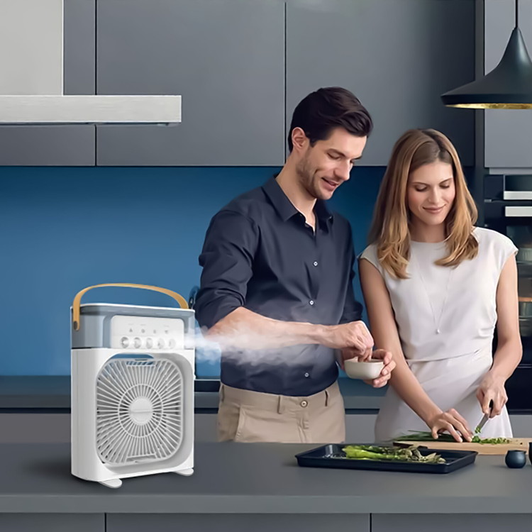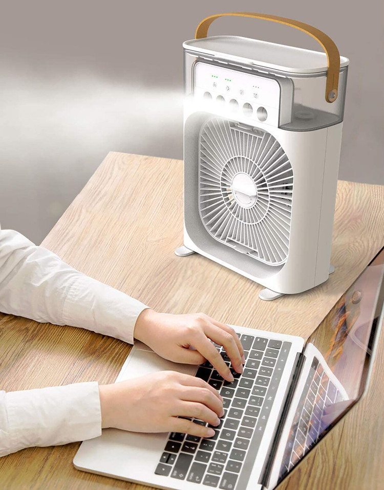 • 卓上扇風機 ミストファン 14cm ACアダプター付き クールエアー ミスト 風量調節3段階 卓上式 涼しい 寝室 リビング キッチン デスク 熱中症対策 熱帯夜(代引不可)