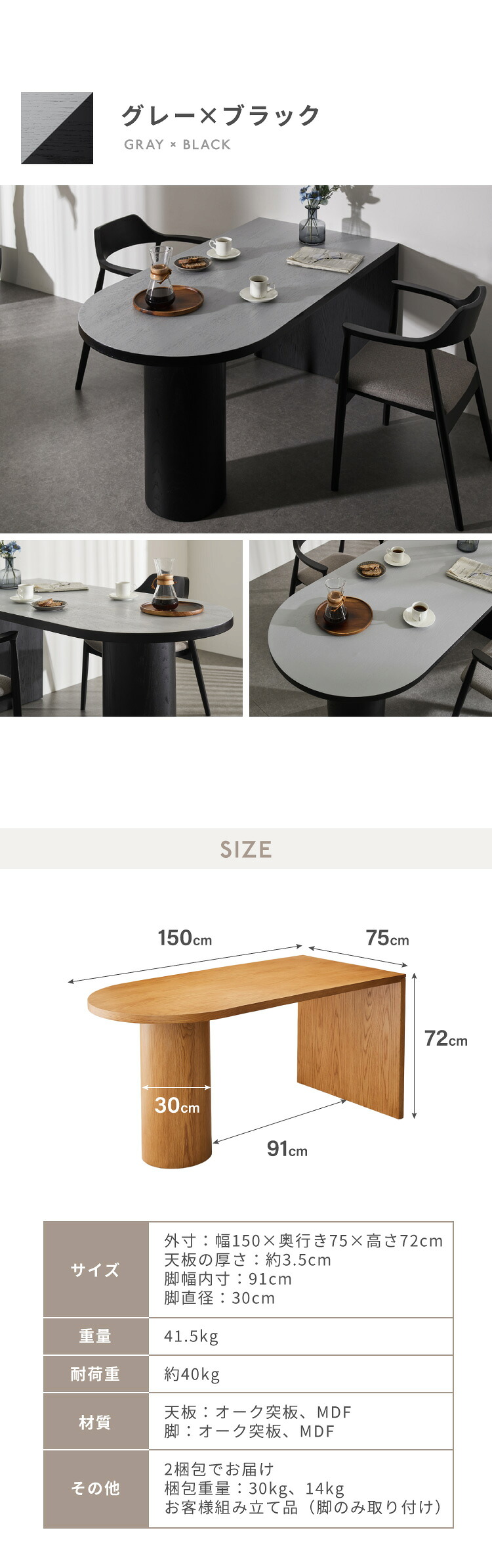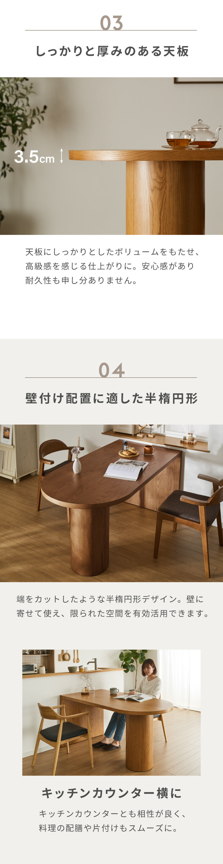 半円 ダイニングテーブル 150 テーブル 単品 4人掛け 壁付け可能 楕円テーブル 楕円 テーブルのみ 脚 壁付け 壁付 デザイナーズ 4人 4人用(代引不可)