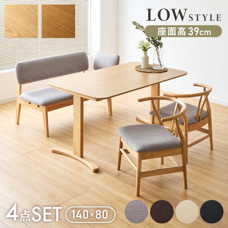 3点セット 幅110cmテーブル+チェア2脚 | 4点セット 幅140cmテーブル+チェア2脚+ベンチ | 4点セット 幅140cmテーブル+チェア2脚+ベンチ 専用背もたれ付き | 5点セット 幅140cmテーブル+チェア4脚 |