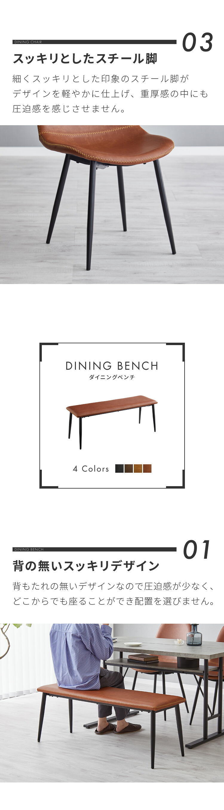4点セット/テーブル T字脚+ベンチ+チェア4脚 | 4点セット/テーブル スクエア脚+ベンチ+チェア4脚 | 5点セット/テーブル T字脚+チェア4脚 | 5点セット/テーブル スクエア脚+チェア4脚 |