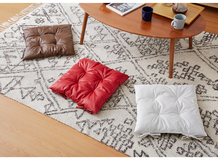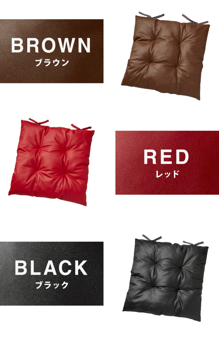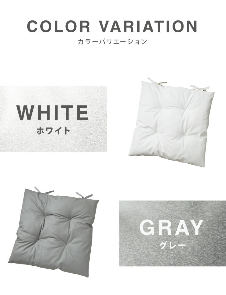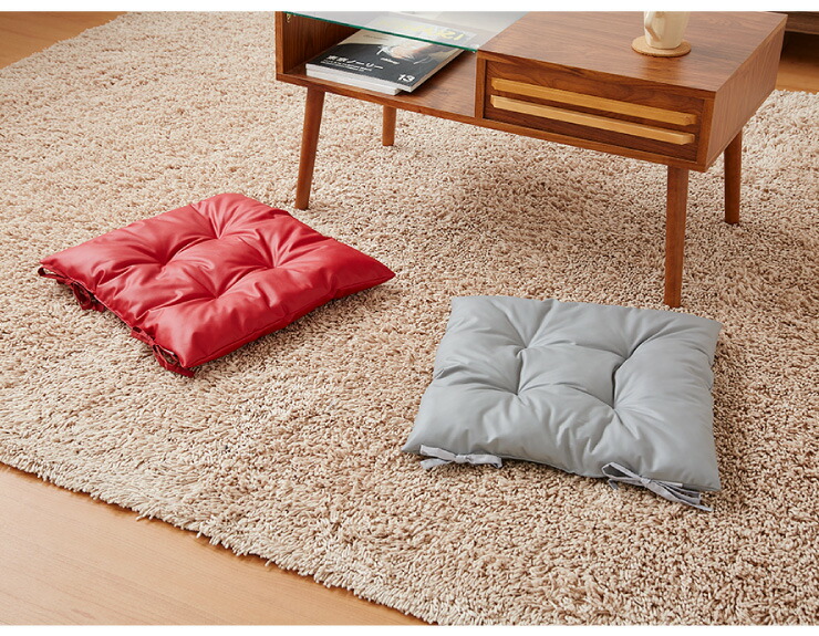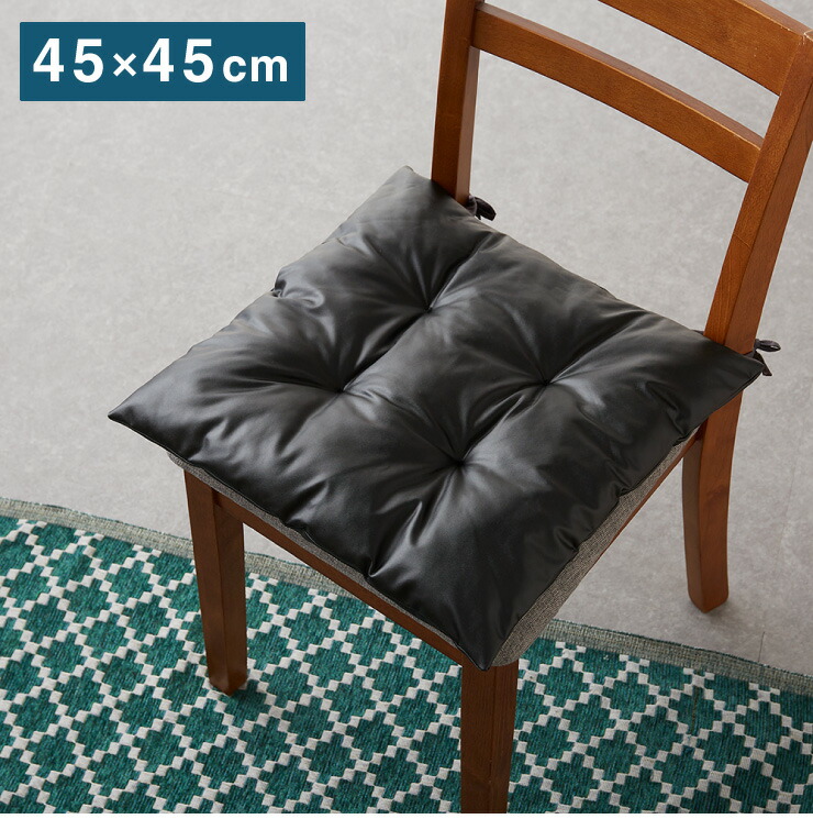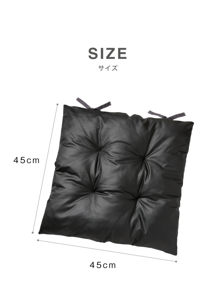 シートクッション レザー調 同色2枚セット 45×45 紐付き 合皮 フェイクレザー ひも付き 正方形 四角 無地 撥水 防刃 2枚セット おしゃれ クッション 座布団 フロアクッション 椅子 椅子用 いす用 チェアパッド