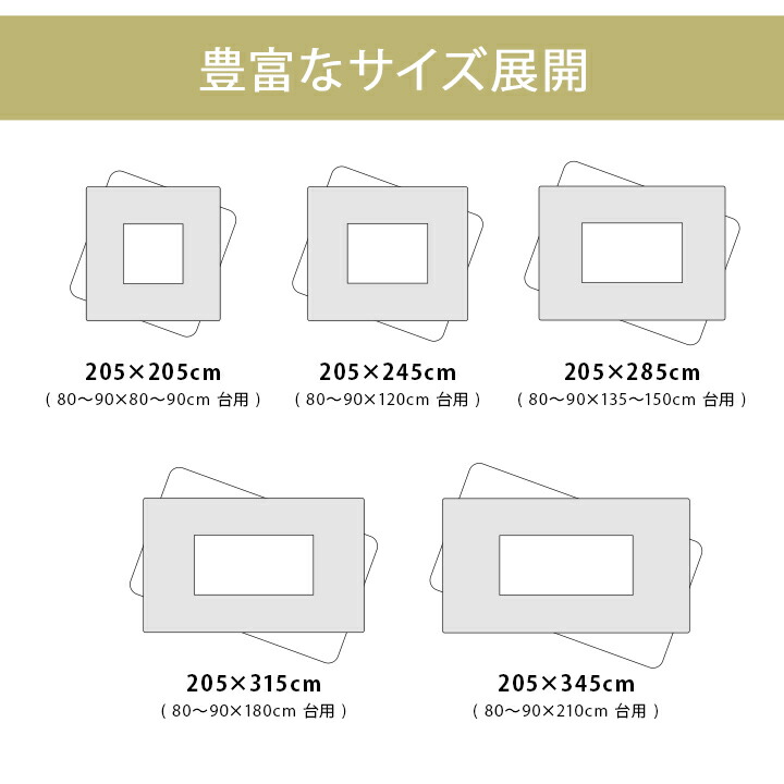 ※205×285cm/205×315cm/205×345cmのサイズは圧縮梱包でのお届けとなります。